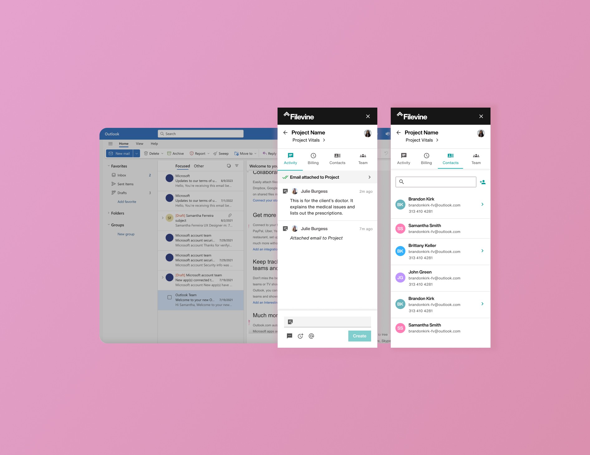 Redesigned Filevine’s Outlook plugin for seamless workflows